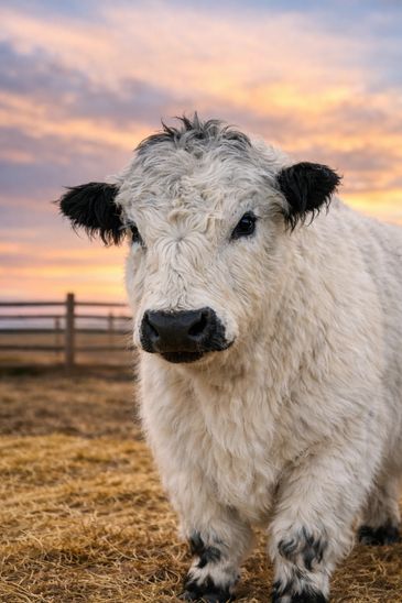 Sprout is pure sweetness in cow form. With her soft white coat and beautiful taupe markings, she turns heads wherever she goes, but it is her loving personality that truly steals the show. Sprout is incredibly people friendly, seeks out attention, and is always eager for a scratch or a treat. Her calm, trusting nature and strong maternal